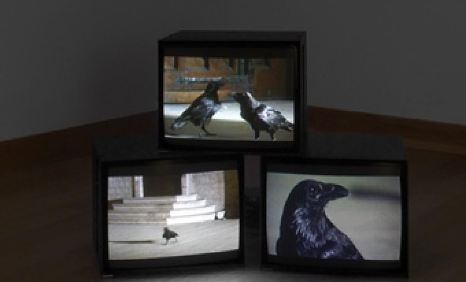 Showing alongside this is Looking Down With His Black, Black, Ee, 2008 which takes its title from a popular Scottish poem about a bird sitting on a treetop, looking down on a group of children, suggesting foreboding menace.